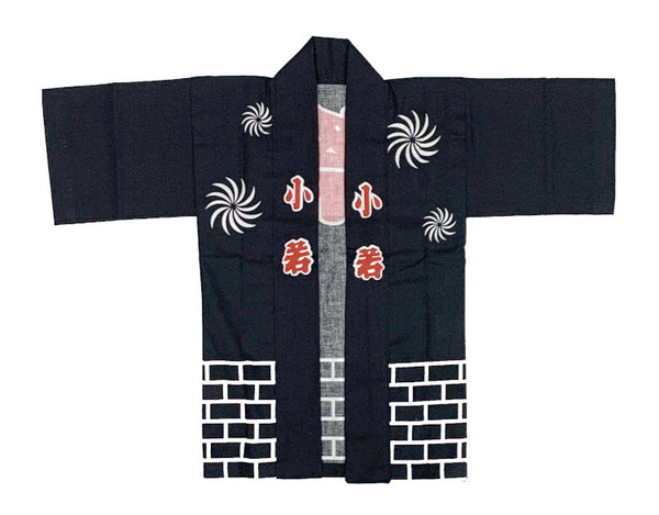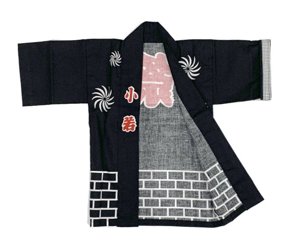 お祭りに着る2才から3才位までの黒色の子供用のハッピです。