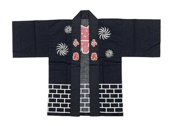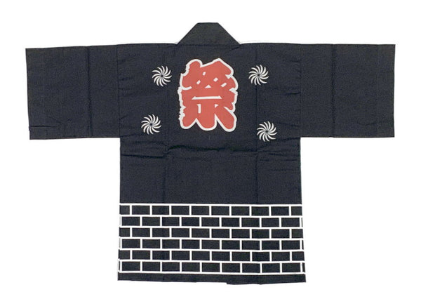 お祭りに着る4才から6才位までの黒色の子供用のハッピです。